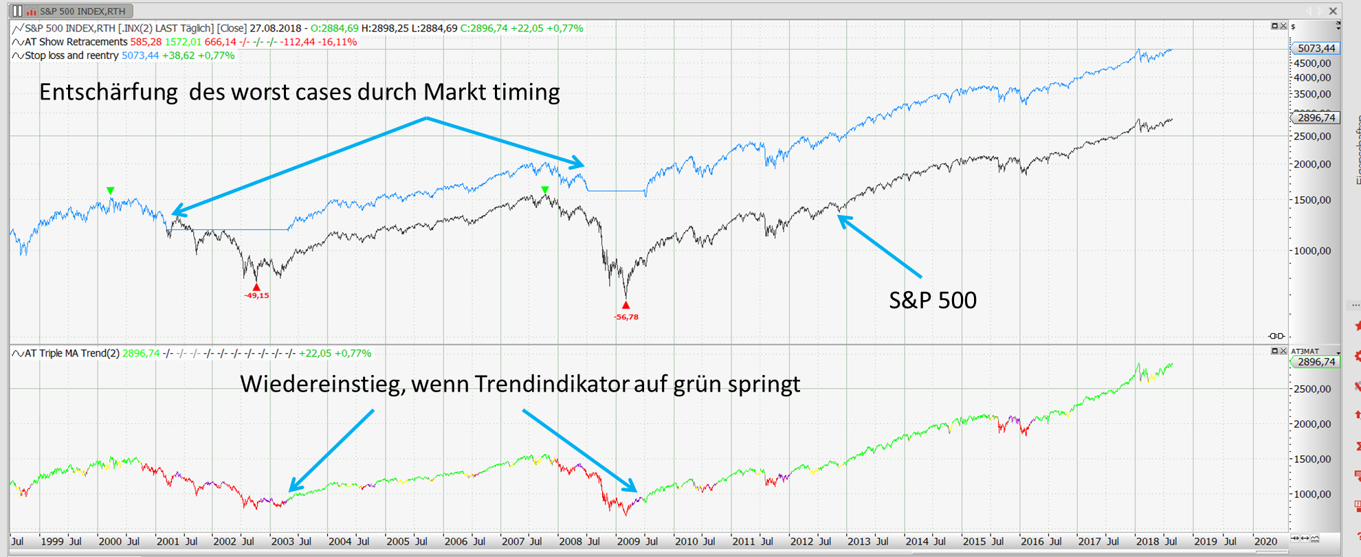 Wiedereinstieg, wenn ein auf gleitenden Durchschnitten basierender Trendindikator wieder einen Aufwärtstrend signalisiert.