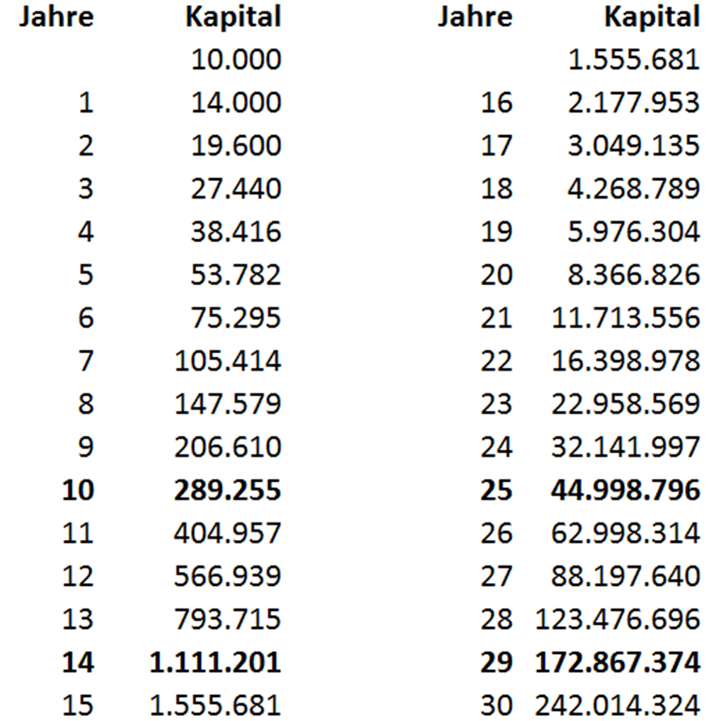 - Was bedeuten 40 % Rendite pro Jahr?