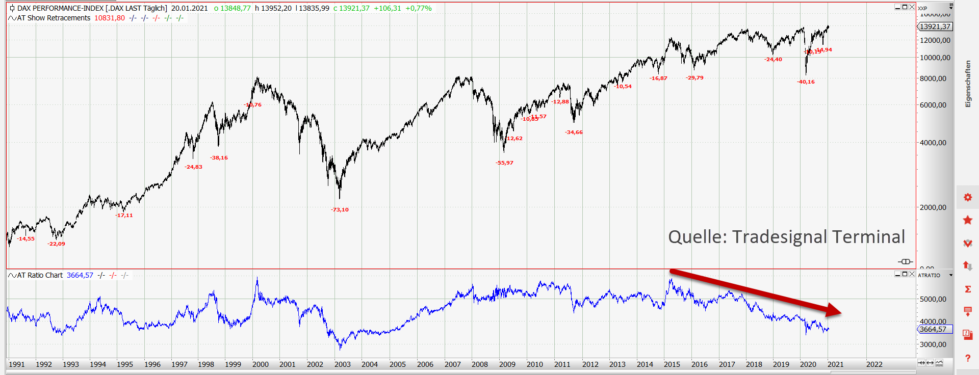 - Eine starke Entkopplung zwischen der fundamentalen Situation und den Börsenkursen
